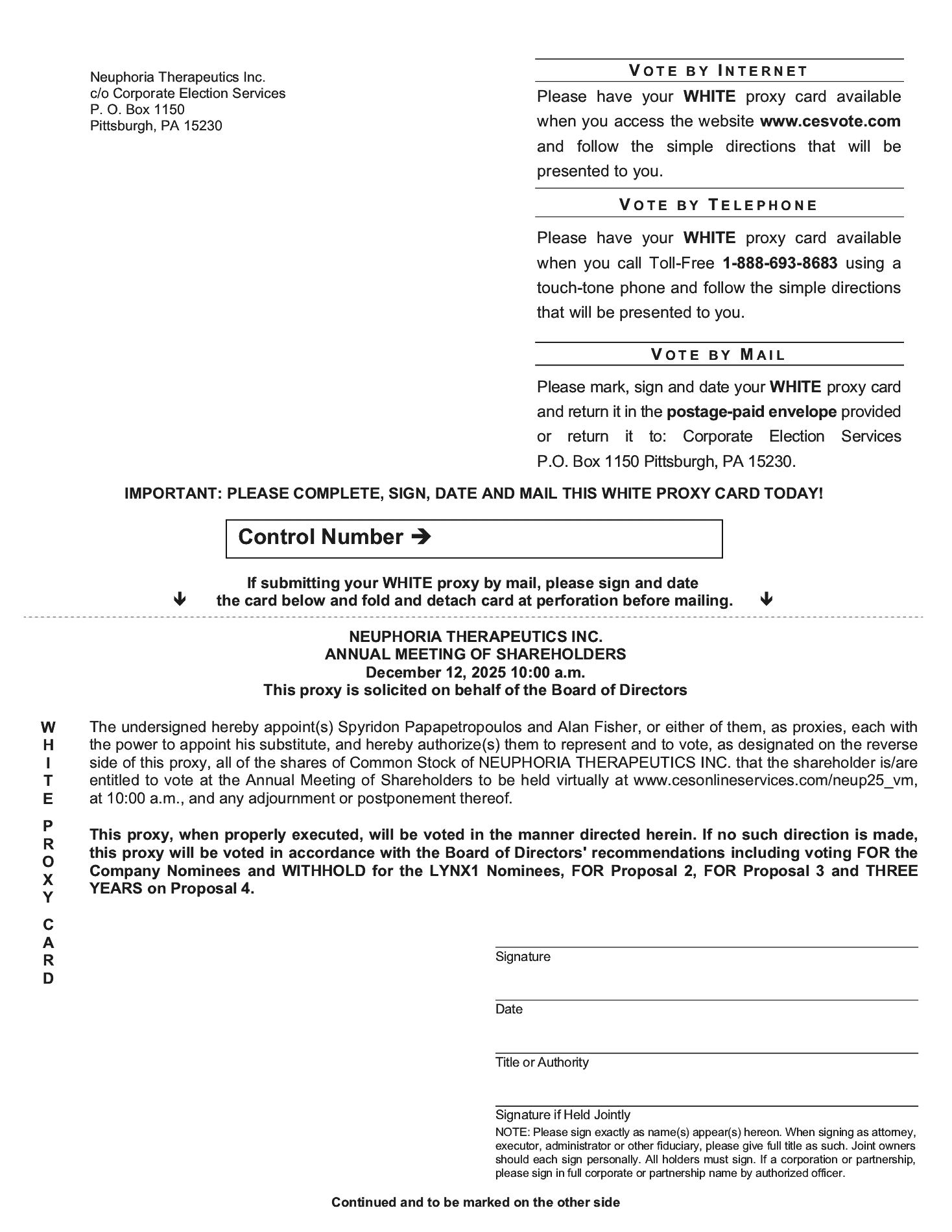 For administrative purposes, it was subsequently agreed that Bionomics, Inc., then a wholly owned U.S. subsidiary of Bionomics Ltd. (now Neuphoria Therapeutics, Inc.), should be party to the employment agreement. Accordingly, on January 15, 2023, the Initial Employment Agreement was terminated and a new employment agreement was entered into between Dr. Papapetropoulos and Bionomics Inc. that, in all material respects, was on the same terms as the Initial Employment Agreement, other than the contracting party (“Papapetropoulos Employment Agreement”).